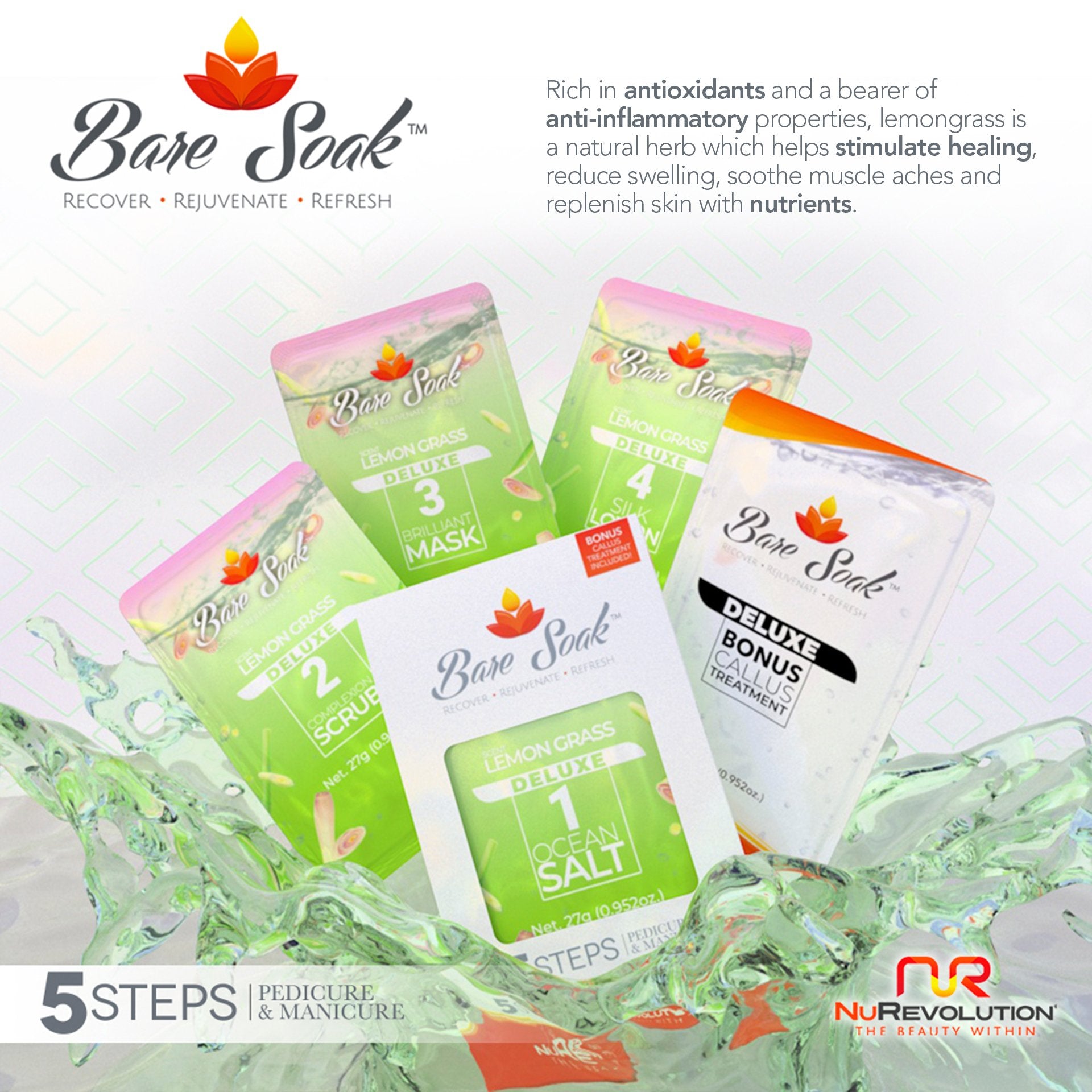 The 5-in-1 luxury pedicure in a box includes bursting ocean salt, cuticle softener, callus treatment, honey scrub, and massage ointment. With these individually packed products, you get perfect portions and there are no worries of cross-contamination.